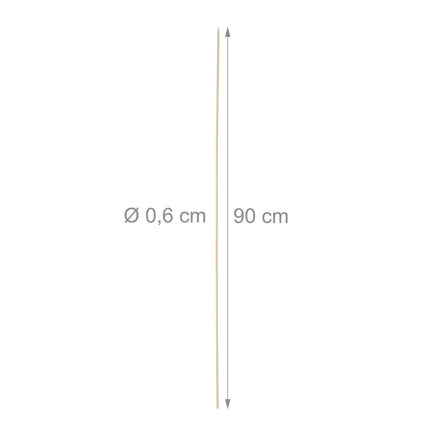 Endlich ist es wieder soweit: Die Grillsaison kann beginnen! Die extra langen Grillspieße kommen im 100er Set zu Ihnen, sodass Sie eine ganze Partygesellschaft ausstatten können. Ob Stockbrot, Marshmallows, Gemüse oder leckere Würstchen: Dank der stabilen und 6mm dicken Spieße verrutschen die Köstlichkeiten nicht. Mit ihrer Länge von rund 90 cm halten die Fleischspieße reichlich Abstand zur Hitzequelle. Die abgestumpfte Spitze und das splitterfreie Material sind zudem äußerst nutzerfreundlich und deshalb auch ideal für kleine Kinderhände. Das macht sie auch zu idealen Mitstreitern wenn Sie sich, im Kreise Ihrer Familie und Freunde, zu einer gemütlichen Runde am Lagerfeuer einfinden.