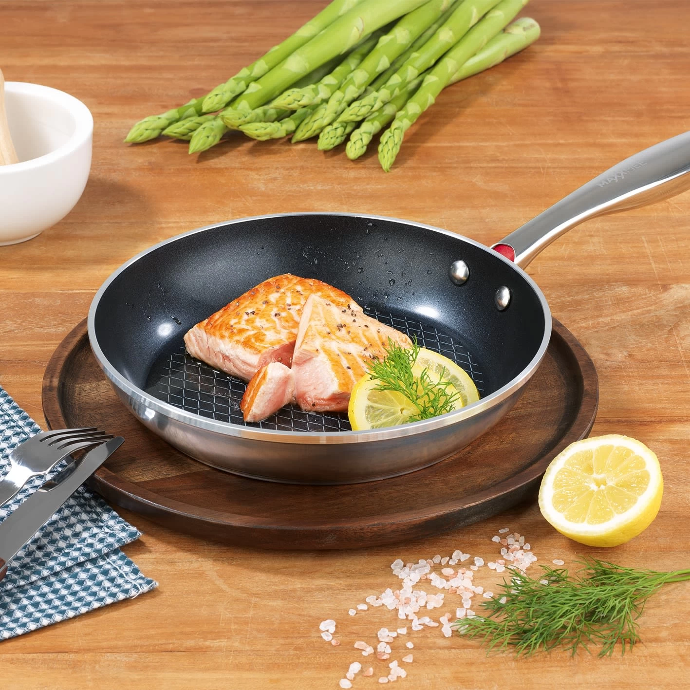 Nichts bleibt haften, nichts brennt an und Bratrückstände perlen regelrecht ab. Damit lassen sich selbst “empfindliche“ Speisen wie Fisch, Omelette und Co. fettarm und ohne ‚Ankleben‘ zubereiten. Der effiziente Wärmeleitboden sorgt zudem für eine gleichmäßige Hitzeverteilung – für beste Bratergebnisse. Nicht zuletzt kann sich die geschmiedete Aluminiumpfanne von MAXXMEE mit ihrer hochwertigen polierten Edelstahl-Optik durchaus sehen lassen – ein echtes Schmuckstück und fast zu schick für die Aufbewahrung im Küchenschrank! Für alle Herdarten geeignet, auch Induktion.