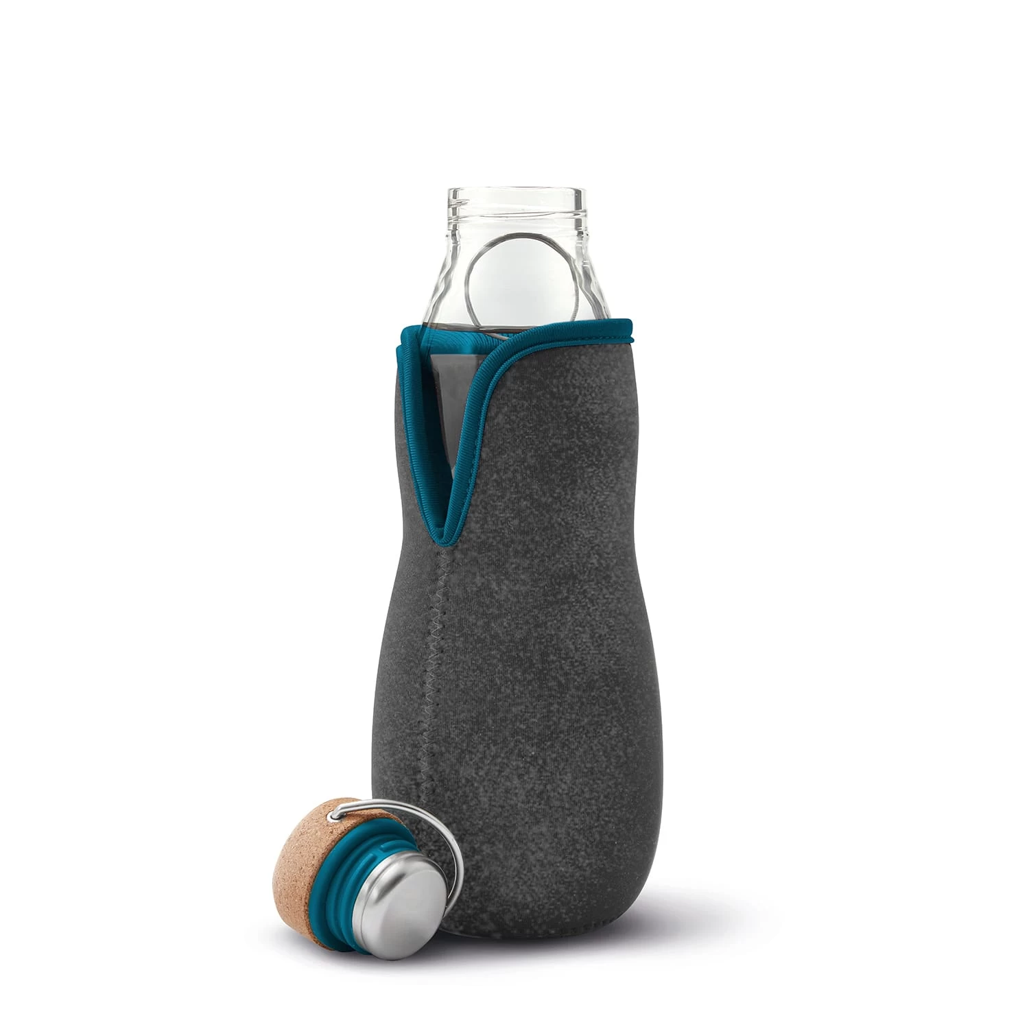 Formschöne Trinkflasche aus Glas, das besonders robuste Borosilikatglas punktet mit seinen leichten Rundungen – welche für das tolle Aussehen und komfortables Halten sorgen. Der Deckel besteht aus einer natürlichen Holzfaser-Polypropylen-Mischung und verleiht der Glasflasche einen zusätzlich stilvollen und zugleich natürlichen Charme – der Schraubverschluss mit Edelstahleinsatz sorgt für den auslaufsicheren Transport und dafür, dass das der Inhalt nicht mit Kunststoff in Berührung kommt. Geschützt wird die Wasserflasche durch eine Isolierhülle aus recyceltem Polyester.