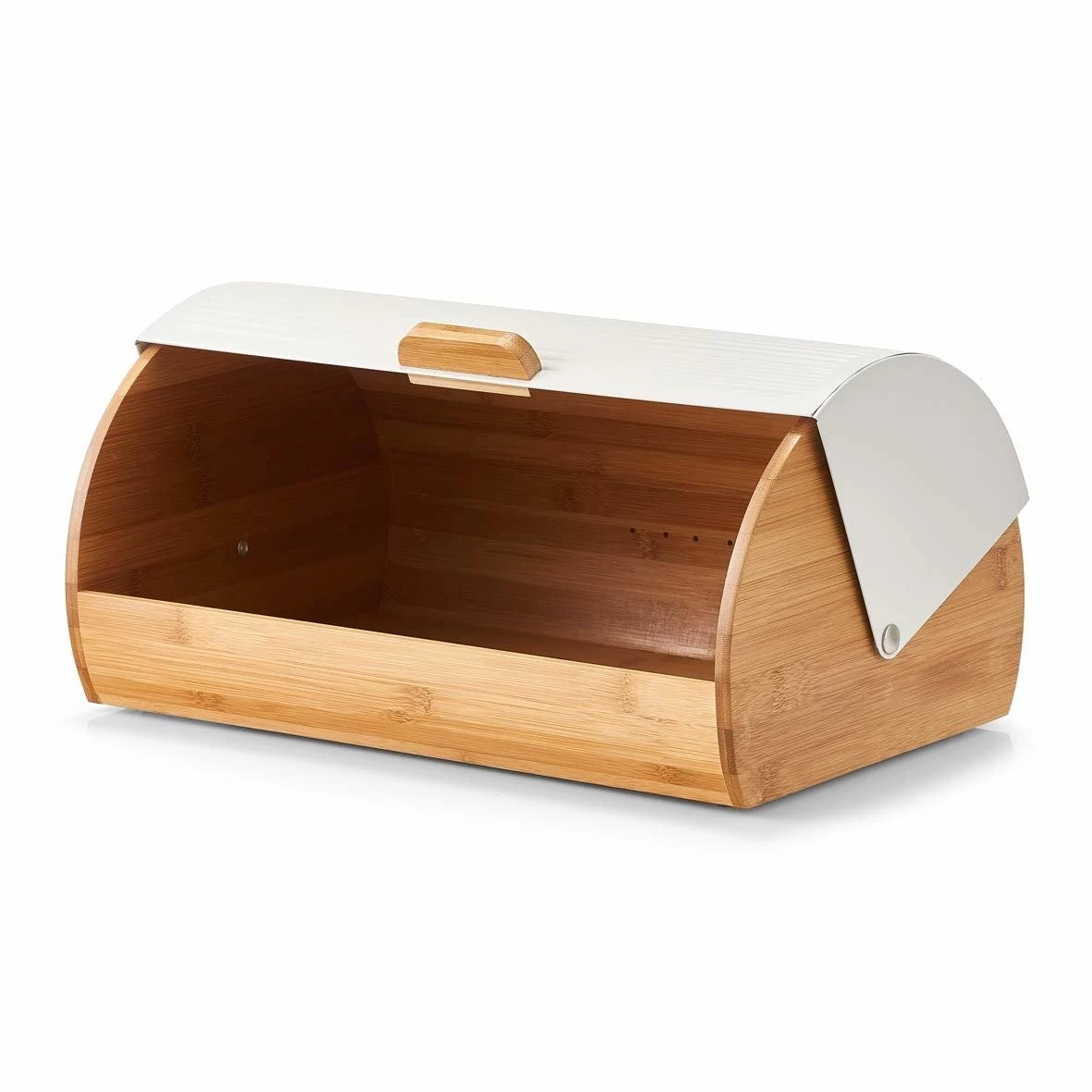 der Brotkasten besteht aus Bambusholz und Metall,