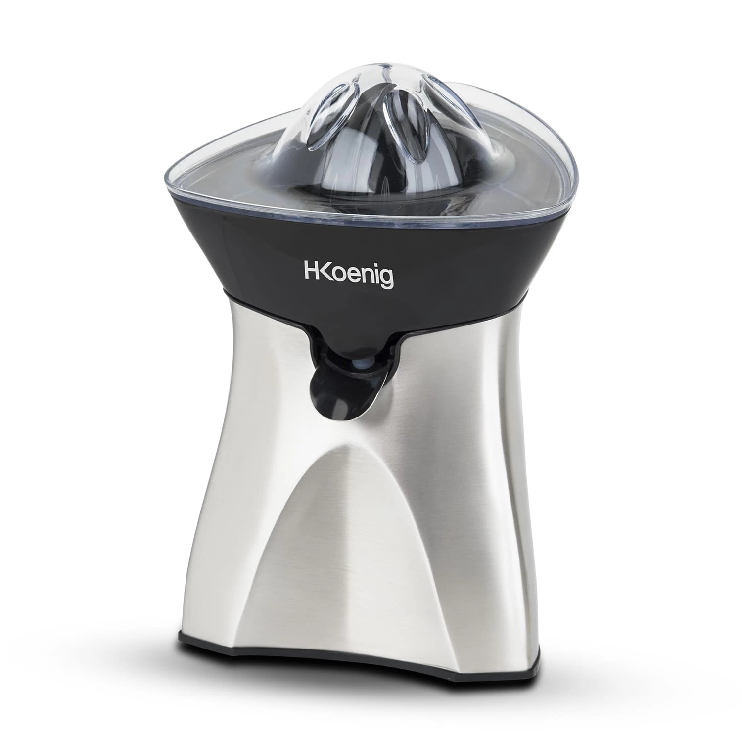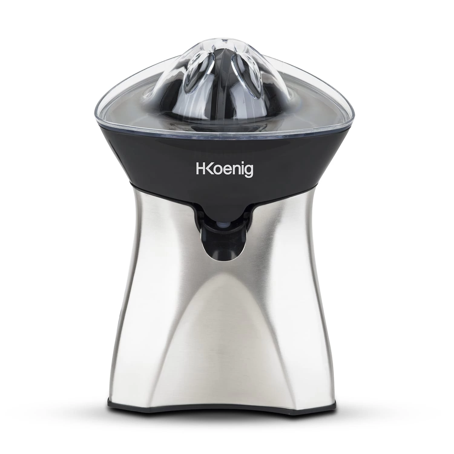 Mit der elektrischen Zitruspresse AGR60 von H.Koenig können Sie ab sofort frische Zitrussäfte ganz einfach zubereiten. Die 2 verschiedenen Presskegel erlauben ein müheloses Entsaften unterschiedlich großer Zitrusfrüchte. Der Presskegel beginnt automatisch zu rotieren, sobald Druck von oben ausgeübt wird. Den Saft können Sie direkt in Ihr Glas fließen lassen, ohne den Pressvorgang zu unterbrechen. Die Einzelteile sind spülmaschinenfest, sodass eine schnelle und einfache Reinigung am Morgen garantiert ist. Mit dem modernen Design aus Edelstahl passt sich die Saftpresse ideal jedem Küchenstil an. Kaufen Sie jetzt die elektrischen Zitruspresse von H.Koenig für eine vitaminreiche Morgenroutine!