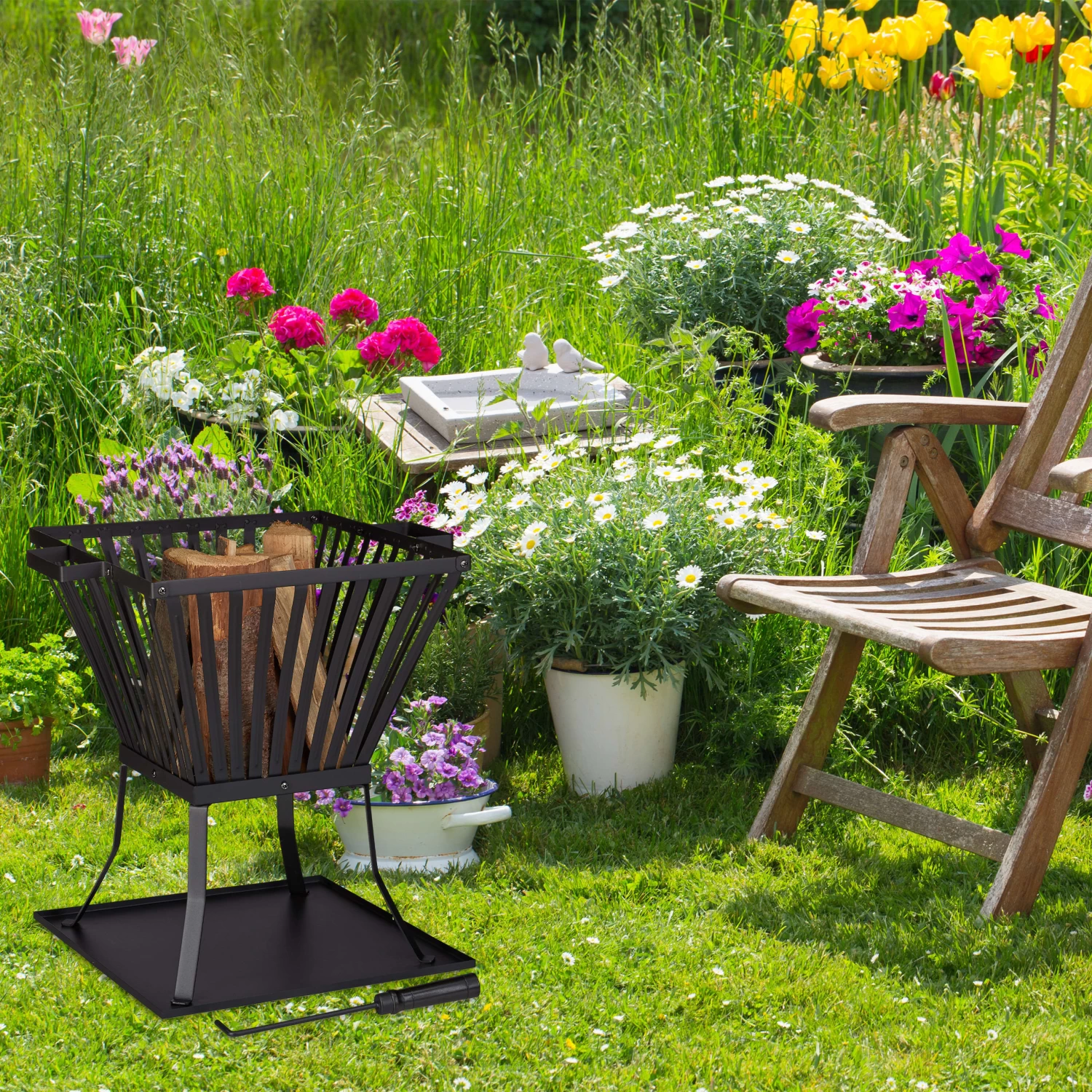 – Robuster Feuerkorb für Holz, mit Schürhaken