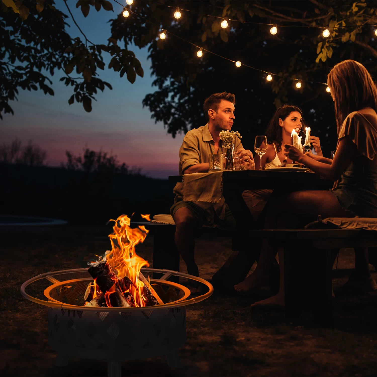 Entfachen Sie in Ihrem Garten ein gemütliches Lagerfeuer und verbringen Sie vor der knisternden Feuerstelle entspannte Stunden mit Familie oder Freunden. Der Funkenschutz schränkt die Höhe der Flammen und den Funkenflug ein und schützt so die Umgebung. Feuerrost und Schürhaken helfen beim Anfachen des Feuers. Dank des Grillrosts lässt sich der Feuerkorb auch gleich zur Zubereitung von leckerem Grillgut verwenden. Wenn Sie die Schale nicht verwenden, schützt die Hülle vor Schmutz und Regen.
