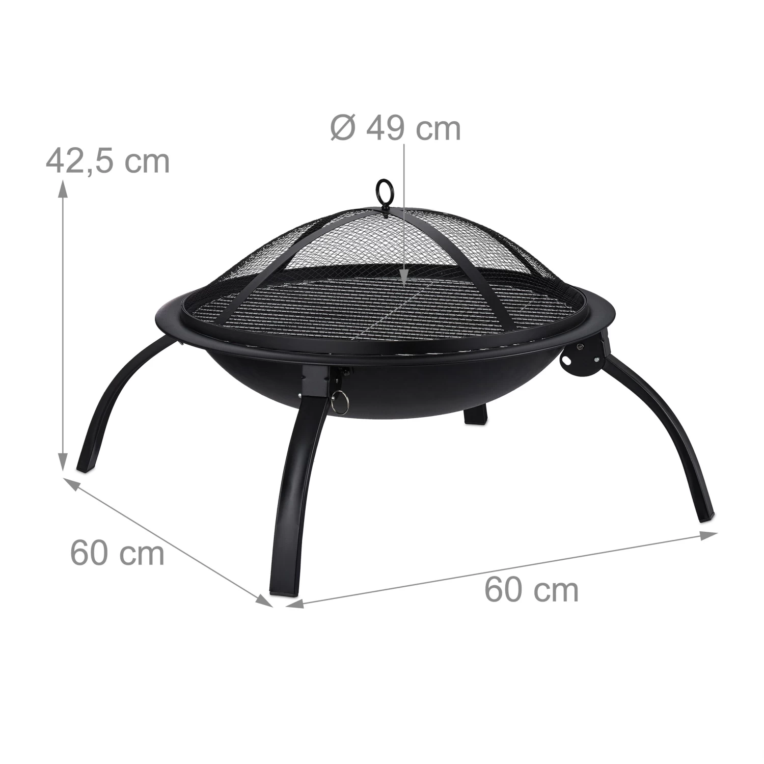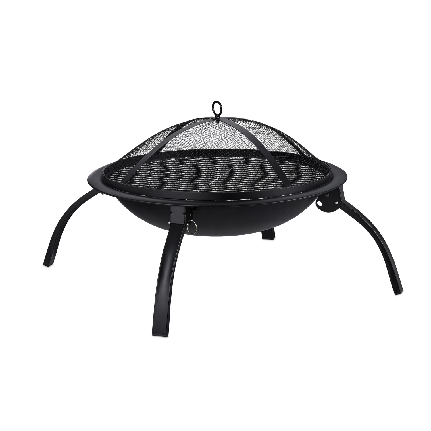 Die Feuerschale kommt ohne lästige Montage aus – Sie klappen einfach nur die Beine runter und platzieren sie auf einem ebenen Untergrund. Dank des Feuerrosts liegt das Holz nicht direkt am Boden der Schale, wodurch eine größere Luftzirkulation gewährleistet wird und das Feuer besser brennt. Der Funkenschutz-Deckel wird auf das Feuer aufgelegt, hemmt gefährlichen Funkenflug und ermöglicht dabei dennoch eine vollständige Betrachtung des Feuers.