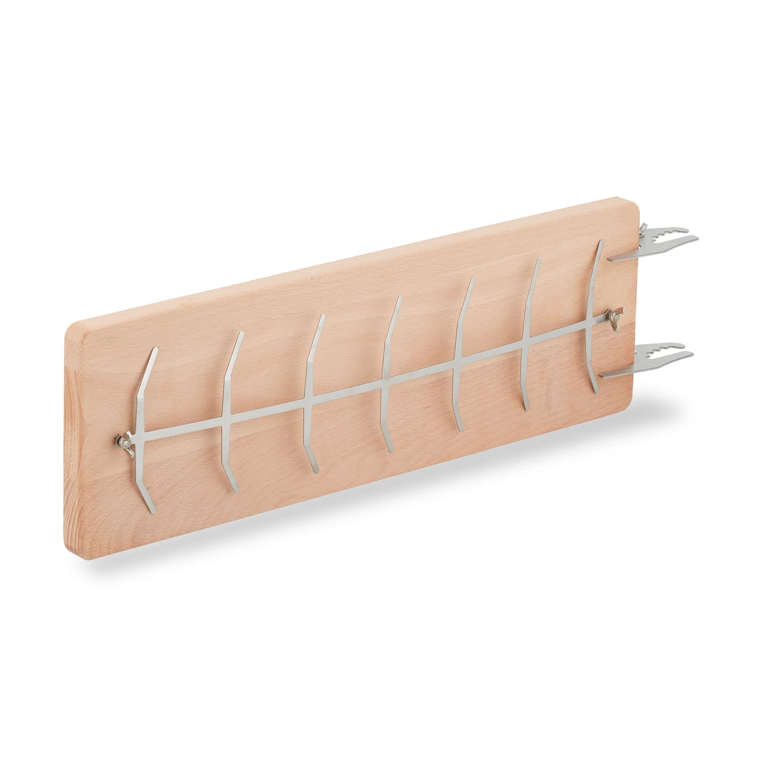 Mit dem Feuerlachsbrett bereitest Du die finnische Spezialität einfach selbst zu und genießt zarten, saftigen Fisch mit einem herrlichen Raucharoma. Fixiere dazu das Lachsfilet mit der Fischspange auf dem Grillbrett; die Schraubhalterung garantiert dabei einen sicheren Halt ohne Verrutschen. Mithilfe der Halterung lässt sich das Flammbrett nun am Rand einer Feuerschale oder eines Grills befestigen. Die Halterung lässt sich in 5 Stufen neigen, sodass eine gute Hitzeregulierung gewährleistet ist.