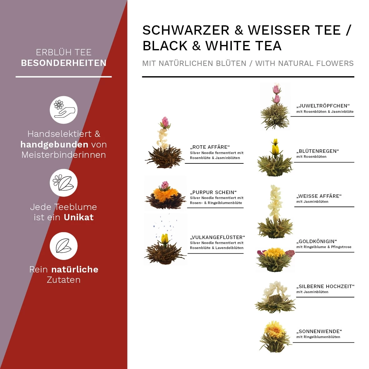 12 Creano ErblühTee-Kugeln in 9 verschiedenen Variationen (je 6Stk. weißer Tee & schwarzer Tee)