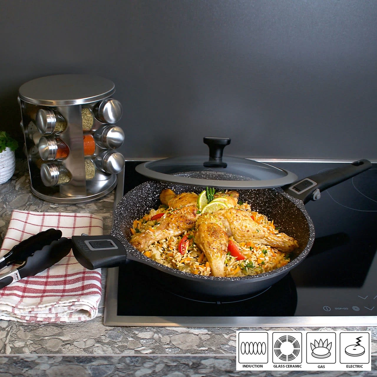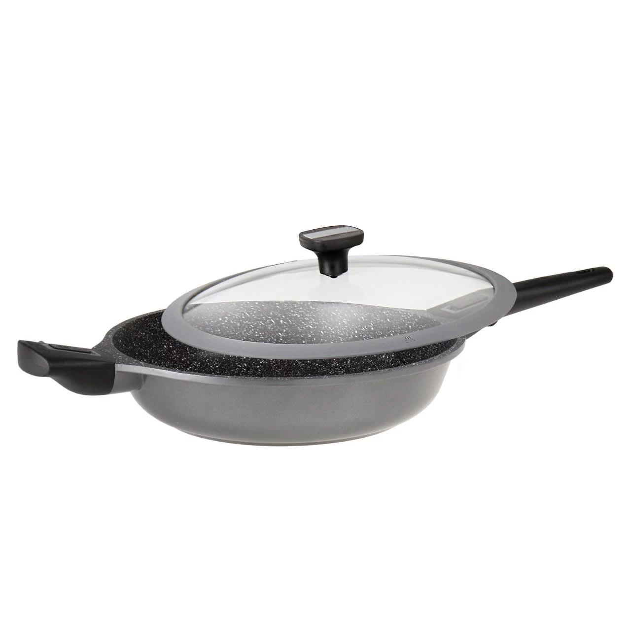 Diese Schmorpfanne hat einen extra hohen Rand von 6,5 cm und eignet sich hervorragend für alle Brat- und Schmorgerichte! Mit einem Fassungsvermögen von 3 Litern lässt sich die Pfanne auch für Gerichte nutzen, die etwas mehr Platz brauchen.