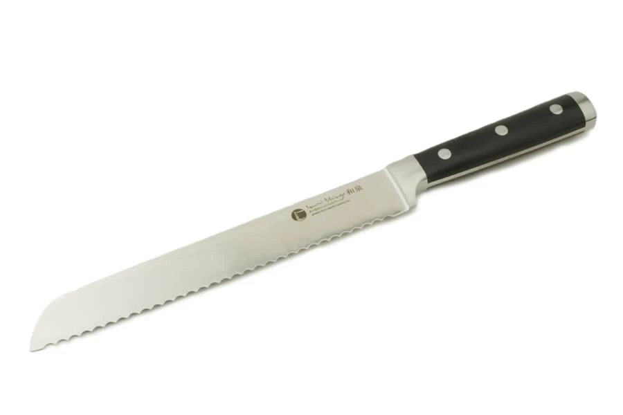 So beinhaltet das Set neben dem klassischen japanischen Gemüsemesser, dem großen Gemüse- und Fleischmesser (Gyuto), einem Schälmesser (Petty) auch ein westliches Ausbeinmesser. Zudem liegt diesem Set ein Brotmesser bei, bei welchem die Klinge, wie in Japan üblich, beidseitig geschliffen ist. Dies erlaubt auch bei harten Brotstücken einen geraden Schnitt durch das Brot.