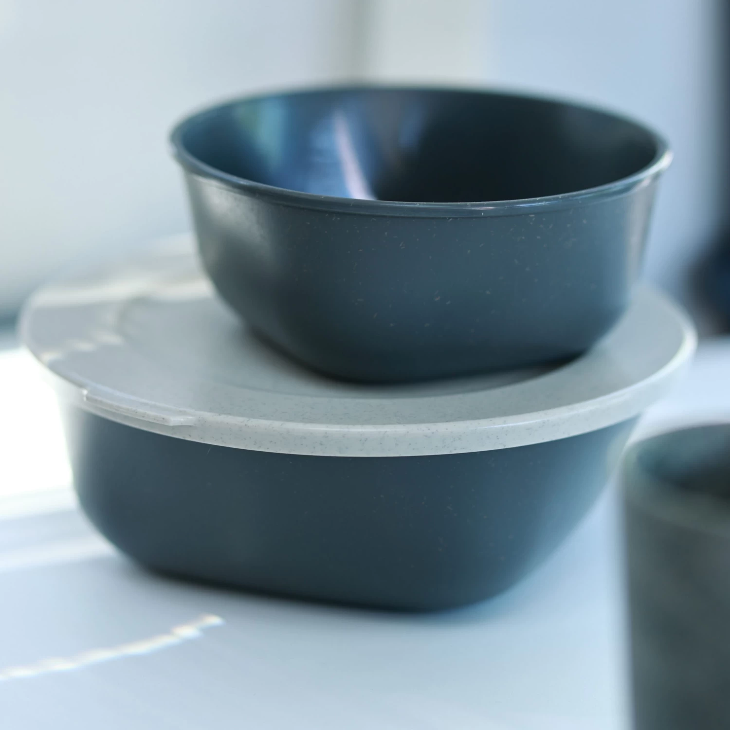 Die kompakte Frischhaltebox hat einen quadratischen Boden, der ihr besondere Standfestigkeit verleiht. Nach oben hin läuft sie kreisrund aus und lässt sich so besonders einfach verschließen. Der Deckel schließt dicht, so bleibt alles frisch und knackig und kann problemlos transportiert werden. •luftdichte Frischhaltedose•durchdachtes Design•stapelbar•100% CO2-neutral ORGANIC BIO-CIRCULAR