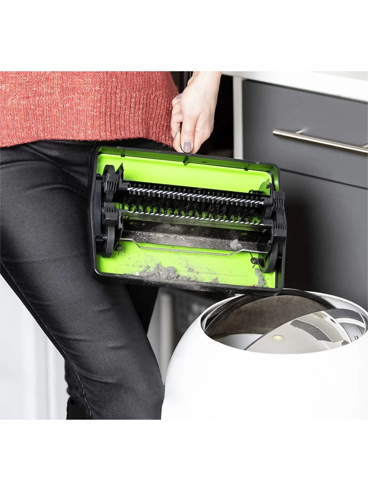 Durch die geniale Konstruktion des Reinigers können Sie auch problemlos unter den Möbeln kehren. Entleeren Sie den Teppichkehrer von Maximex dann einfach, ohne dabei auf teure Staubsaugerbeutel setzen zu müssen. Sofern Sie den praktischen Helfer nicht mehr benötigen, können Sie diesen platzsparend verstauen – die klappbare Funktion macht dies möglich. Im Lieferumfang sind Metallgehäuse, der 3-teilige Stiel und ein zusätzlicher Reinigungskamm enthalten.
