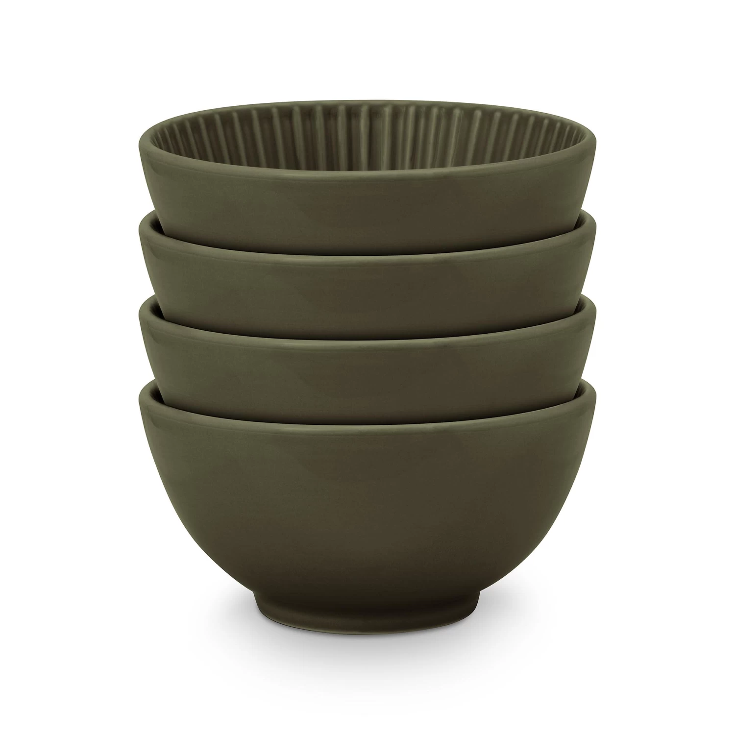 VTwonen Geschirr „Set/4 Bowls On Foot Relievo Dark Green“ In Grün – 15.5cm