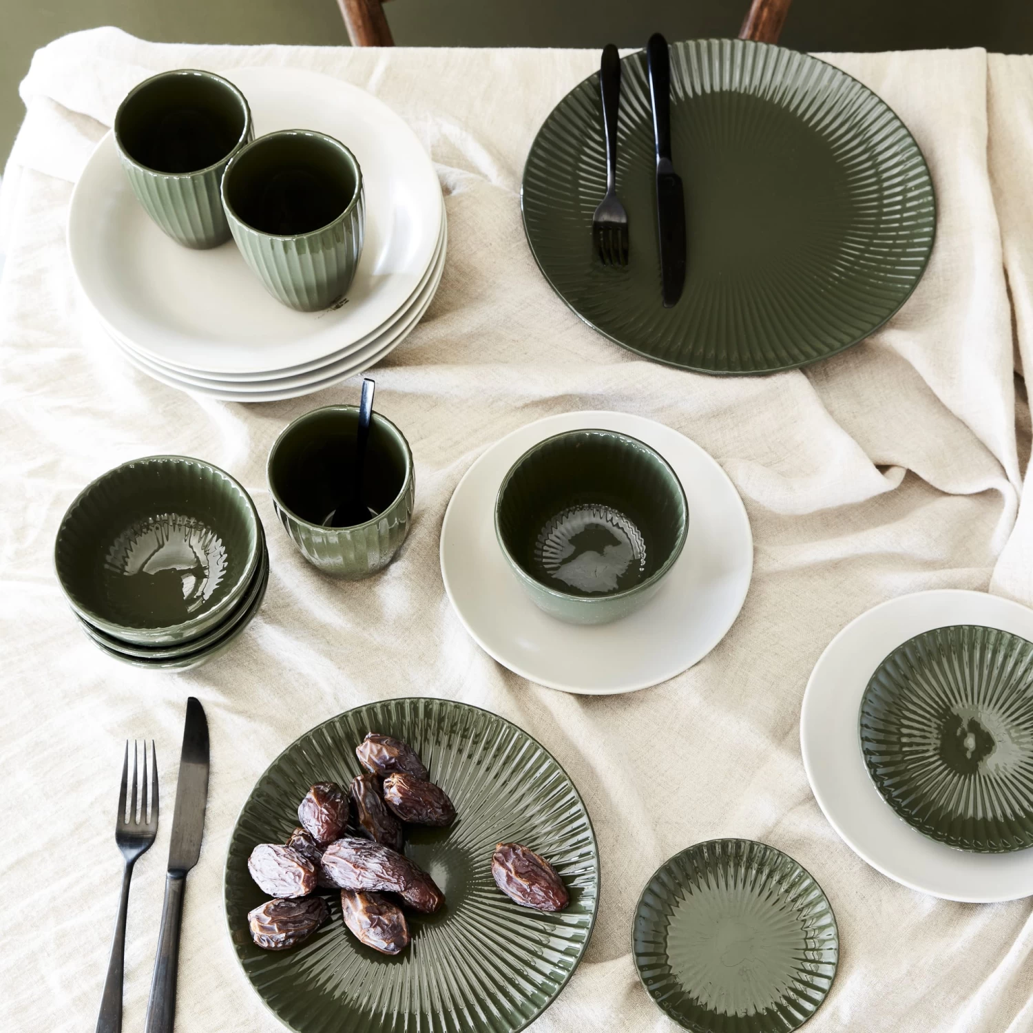 Machen Sie Ihren Tisch ein bisschen spannender und auffälliger mit diesen Relievo Dark Green Geschirr von vtwonen. Stellen Sie Ihr Geschirrset zusammen und beginnen Sie mit kochen.