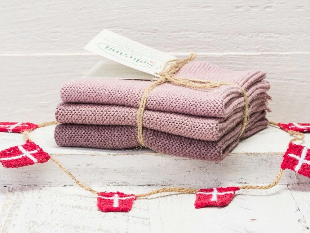 Wischtücher gestrickt im 3er Geschenk Bündel in staubig rosa kombi von Solwang